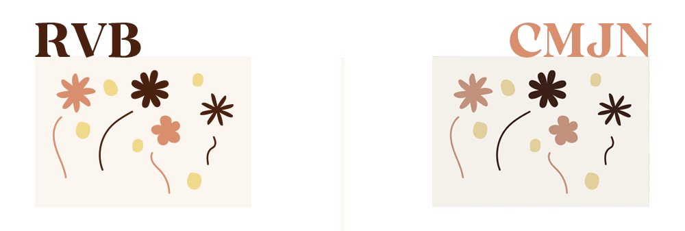 La difficulté avec ces deux modes, c’est que sur un écran d’ordinateur, tu ne verras pas une grande différence. Les couleurs CMJN sont plus fades et moins lumineuses. Donc pour avoir le vrai rendu des couleurs à l’impression, il faut obligatoirement passer par cette étape d’impression !